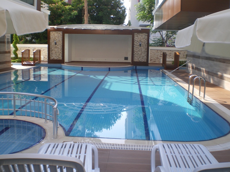 При входе в комплекс предусмотрена охрана, открытый бассейн размером в 145 кв.м, детский бассейн. При бассейне фитнес-центр,туалет, отдельная сауна в каждом блоке (А и В),раздевалки и душ. Для того, чтобы улучшить качество жизни в комплексе, мы предусмотрели панорамный пейзаж индивидуального дизайна, а на территории общего пользования специальное освещение и систему кондиционирования воздуха. В подвальном помещении сделаны специальные шкафчики для хранения. Лужайки орошаются с помощью системы автоматического полива, управляемой таймером и дистанционным управлением.Вода,необходимая для полива и наполнения бассейна, подается бесплатно из частной буровой скважины. Для освещения мест общего пользования предусмотрены сенсорные датчики. Для предотвращения перебоев в подаче электроэнергии в комплексе имеется генератор. Для декорации входа в подъезд, всех лесничных площадок и главного входа в комплекc применен мрамор первого класса. Для детей предусмотрена специальная игровая площадка. Хорошая охрана комплекса создаст вашему ребёнку атмосферу безопасности, что даст вам возможность насладиться свежестью бассейна, расслабиться и весело провести время. Предусмотрена круглосуточная охрана и услуги техническо поддержки , a также (капыджы). На территории комплекса ведется круглосуточное наблюдение восьмью независимыми видео-камерами. За камерами можно следить по телевизору из каждой квартиры или посредством доступа в интернет из любого другого места. Таким образом, вы будете иметь возможность следить за вашим ребенком, который играет на лужайке или плещется в бассейне. Предусмотрена связь между квартирами и охраной посредством домофона с видео и аудиопередатчиком. Благодаря этой системе работник охраны будет иметь возможность видеопоказа ваших посетителей и гостей. Если вы не захотите, чтобы ваш голос был услышан, связь можно будет отключить. Также можно будет обеспечить возможность для переключения видеодомофона на чип-карту или шифр. Благодаря центральной спутниковой антене во всех квартирах и комнатах можно будет иметь доступ к спутниковому вещанию без каких-либо дополнительных установок. По центральному спутниковому телевидению, сигнал которого будет передоваться четырьмя антенами, у вас будет возможность смотреть различные каналы Турции, России и Европы.