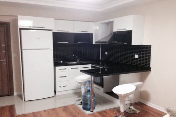 Продаётся Квартира 1+1 60 м2 2 этаж (Дизайнерские обои, кухня и ванная-чёрный мрамор, пластиковые окна, пол- ламинат. Полностью меблированна, имеется необходимая бытовая техника. В доме имеется бассейн, электромангал, спортзал и сауна, услуги привратника. Айдат- 95 лир.