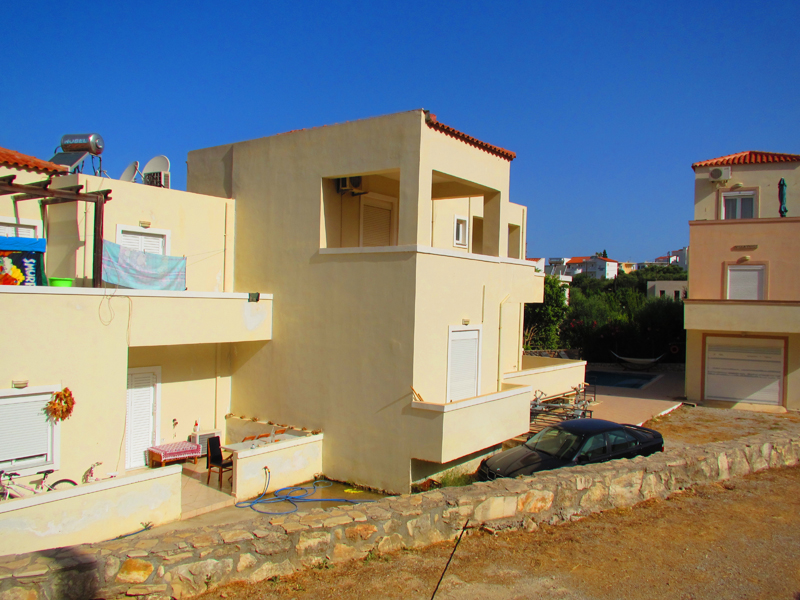 Дом площадью 100 кв.м расположен в курортном поселке Альмирида. До песчаного пляжа - 100 метров. Дом с 3 спальными, 2 ванными комнатами и гостиная с кухней. Большие балконы и веранда. Территория участка благоустроенна, есть общий бассейн на 4 дома. Год постройки - 2007.