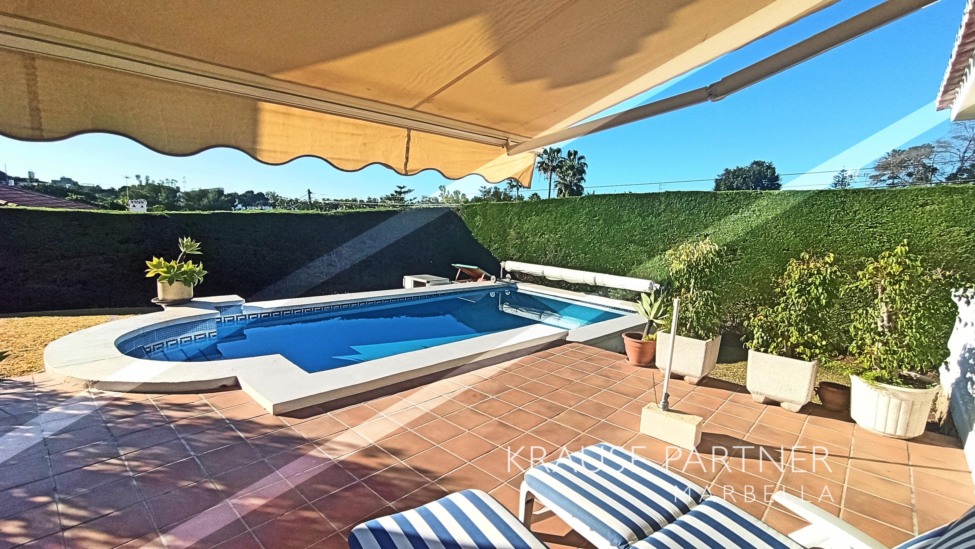 Detached house with large garden and pool close to the beach for sale.