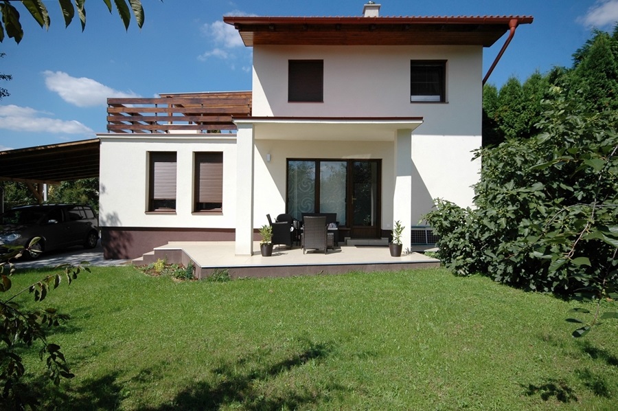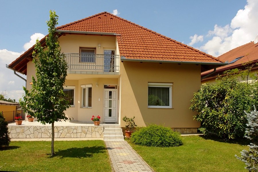 Дом новой постройки , элегантный . Находится в Хевизе в тихом районе близко к центру города . К дому пренадлежит ухоженный , красивый сад . Во дворе находится стоянка для машин с навесом . В гостинной комнате дома , стоит красивый каминь , который по...