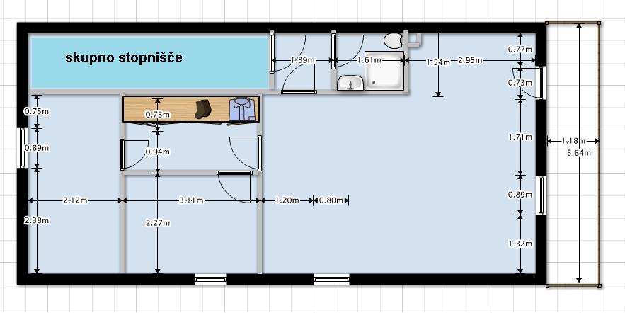 светлая 3-х комнатная квартира площадью около 60 кв.м. на 2-м этаже малоквартирного жилого дома расположение: в 1 км от центра Краньской Горы холл, гостиная (с возможностью установки камина) с кухней, 2 спальни, гардеробная, санузел, балкон + кладо...