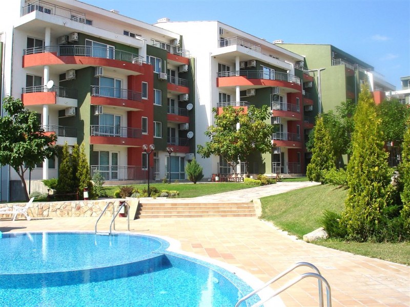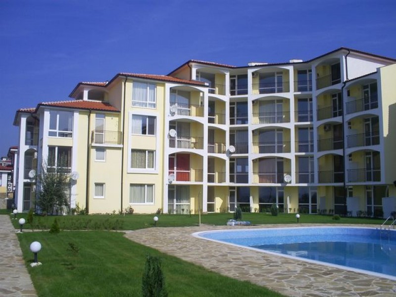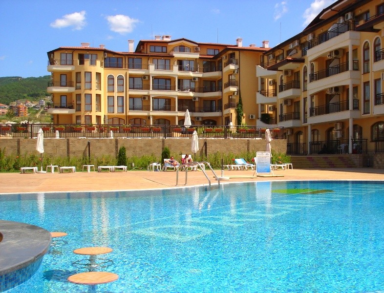 Цена: 26 900 евро Просторная студия в комплексе, расположеннном в элитной северной части Солнечного Берега (где Солнечный берег переходит в Святой Влас) в непосредственной близости к пляжу, где сосновый лес сливается с морем и с золотой песчаной полосой